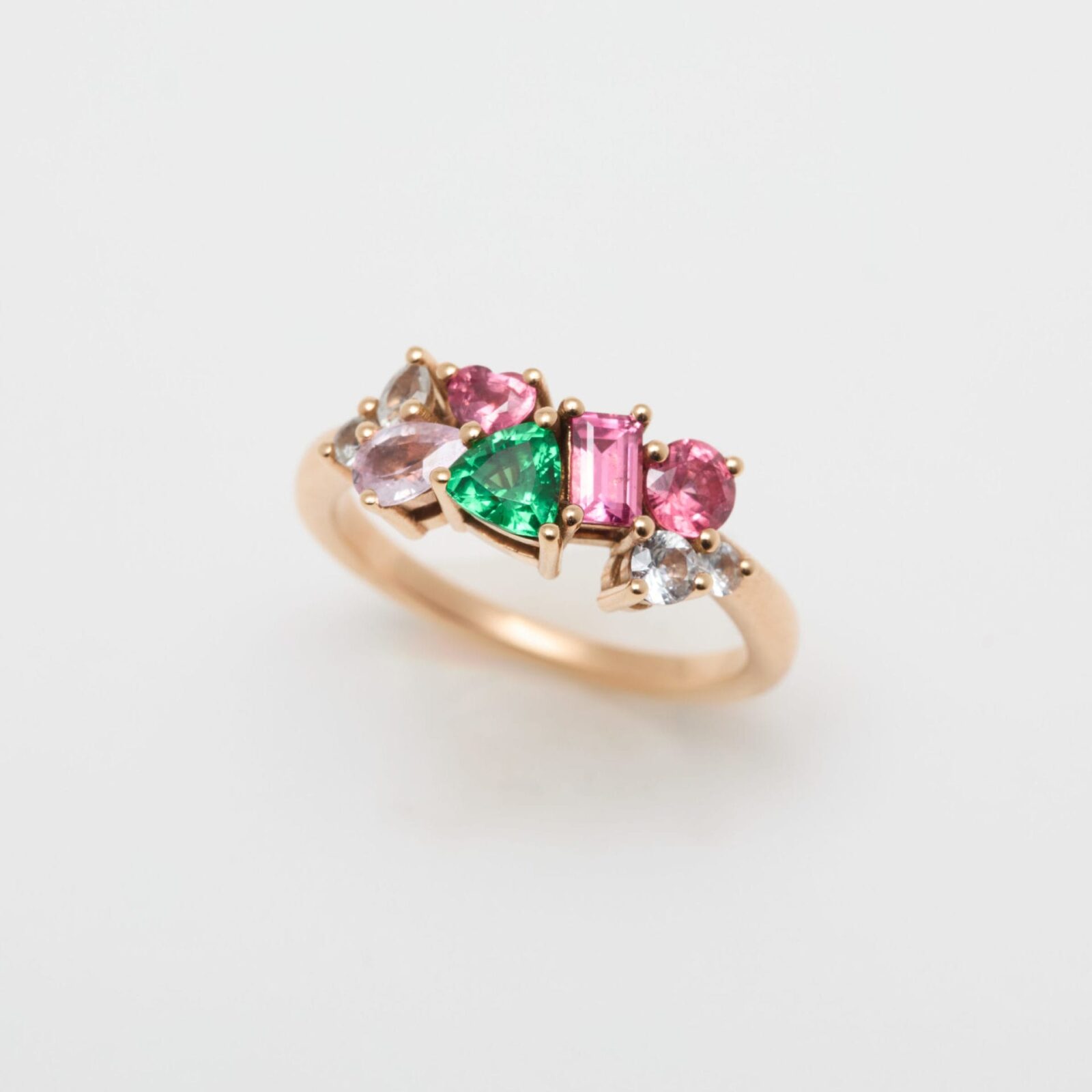 - Bague Constellation en or rose 18 carats, sertie de Tsavorite, Saphirs Pêche, Spinelle Mahenge et saphir Blanc (total 1,86 carats)