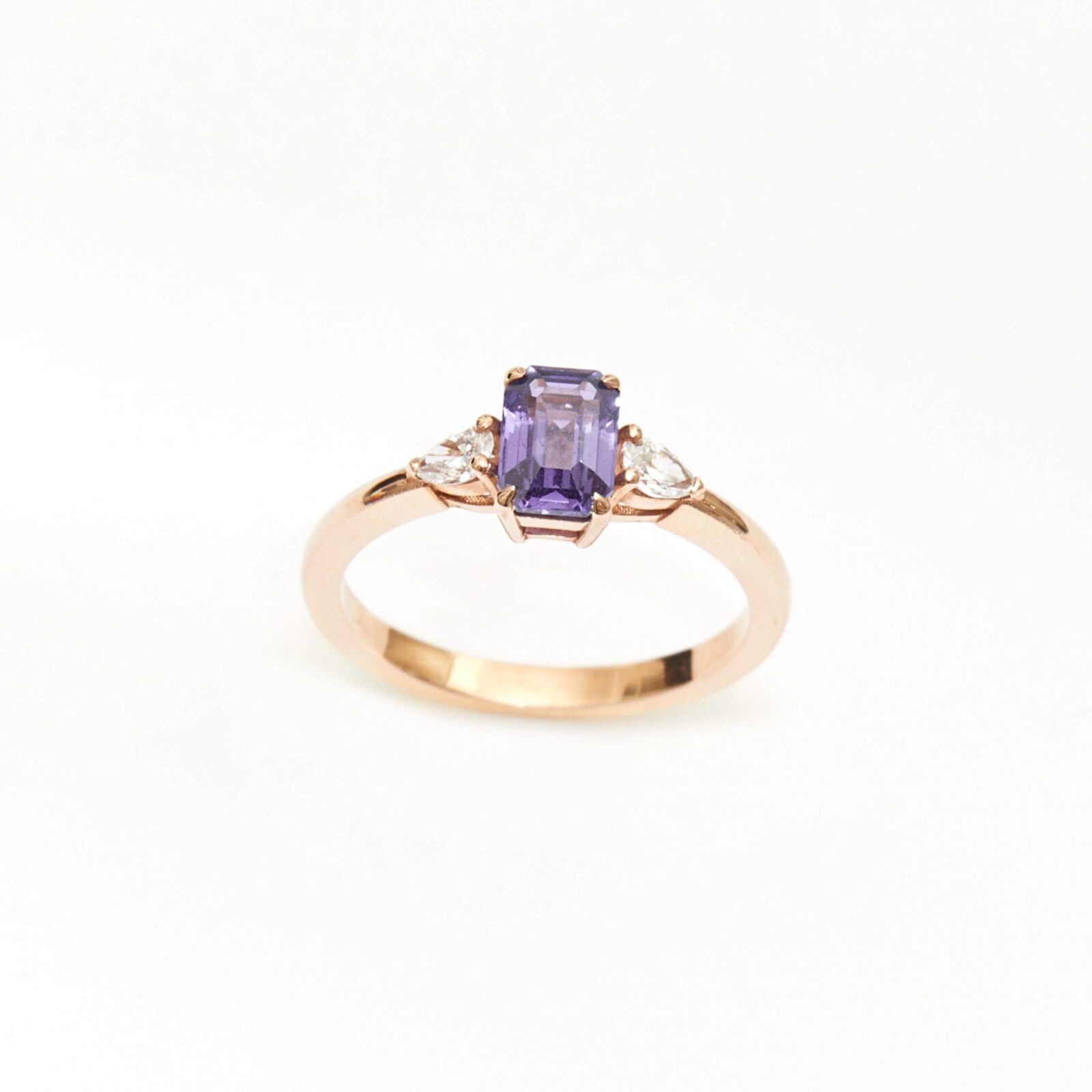 - Bague Elahera en or rose 18 carats, sertie d’un saphir lavande 1.00 carat accompagné de diamants.