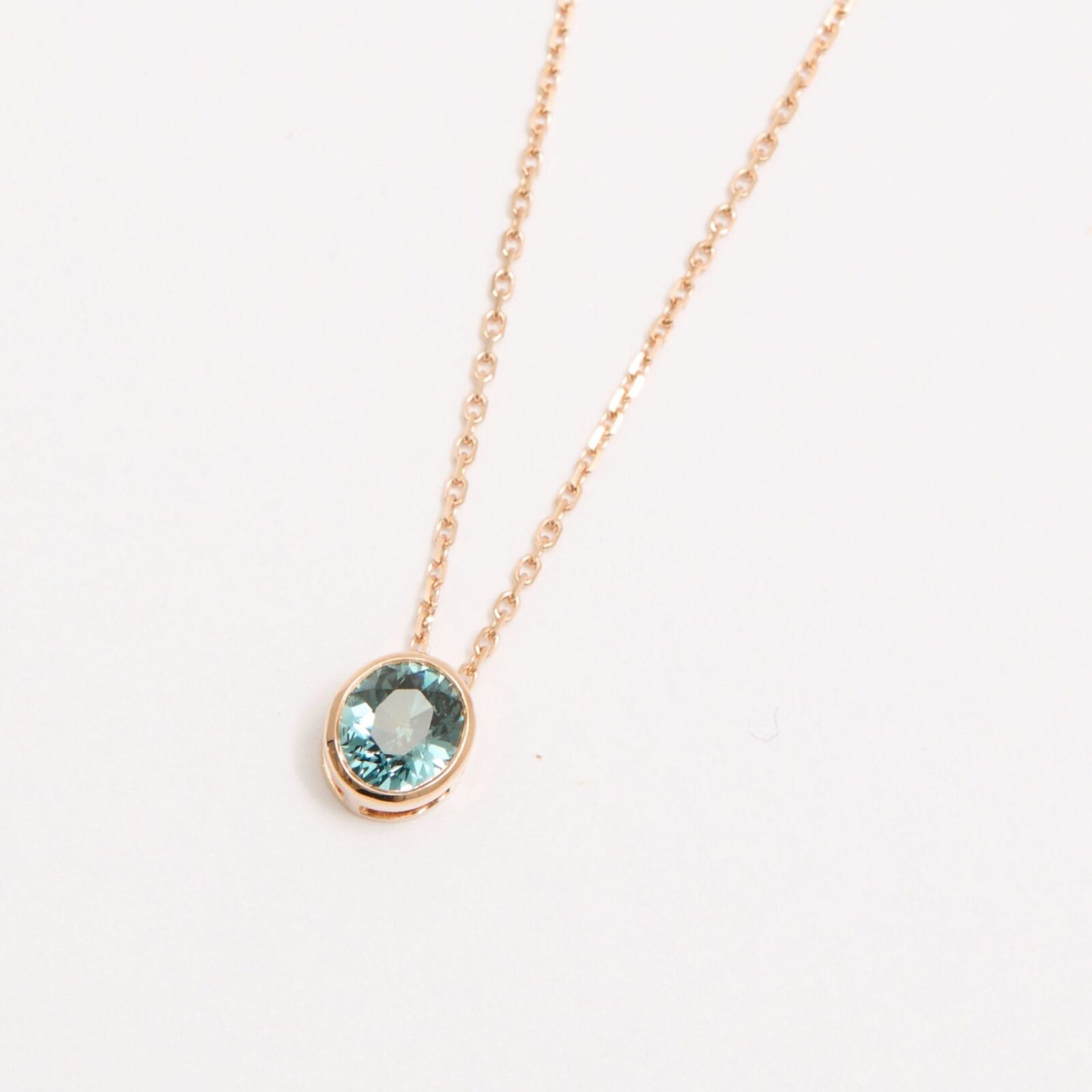 • Collier Trinco en or rose sertie d’un Saphir Teal de forme ovale de 1.11 carats.